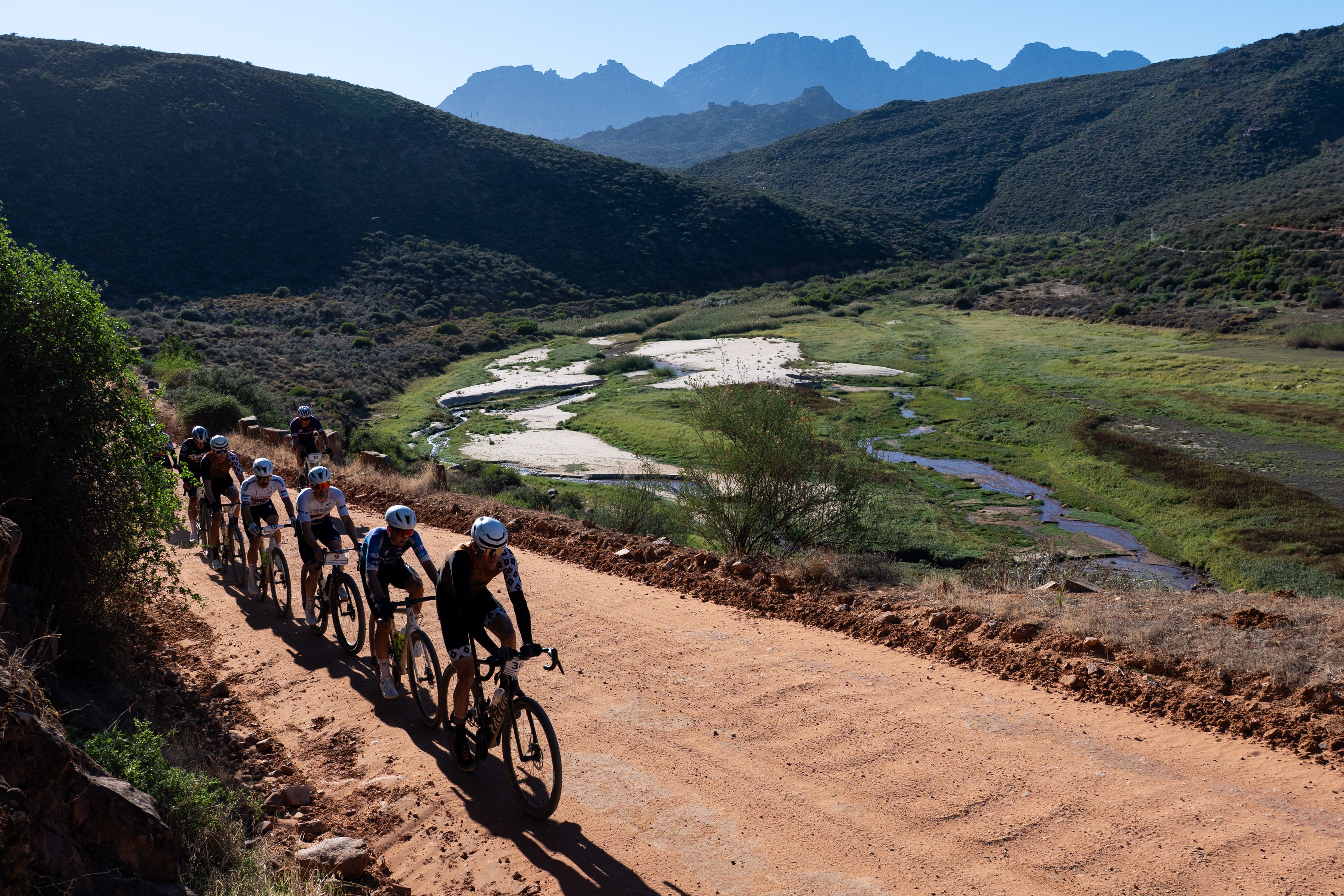 The Ceder Gran Fondo delivers the ultimate racing experience with a dynamic course that includes river crossings, soft sand, fast smooth gravel, challenging terrain, rough corrugation, steep climbs, and rapid descents. The route features thrilling descents and breathtaking views, showcasing the Cederberg’s unique character—gravel racing at its best.
